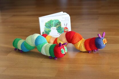 The gauge is not important, but you should use needles at least one size smaller than indicated on the yarn to prevent the fiberfill from showing. My caterpillars are made from cotton yarn on needles 2.5mm and measure about 40cm (16inches).