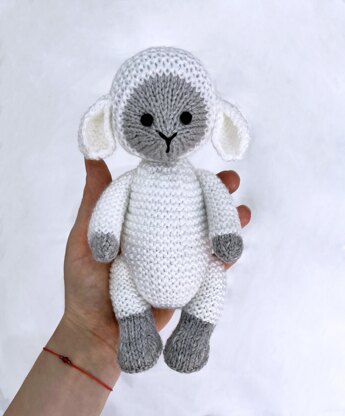 This is a knitting pattern for a stuffed sheep toy called Cuddlekins. The toy is knitted as follows: the head and ears are worked flat on 2 needles, while the body, arms and legs are knitted in the round on double-pointed needles. Finally, the sheep is sewn together.