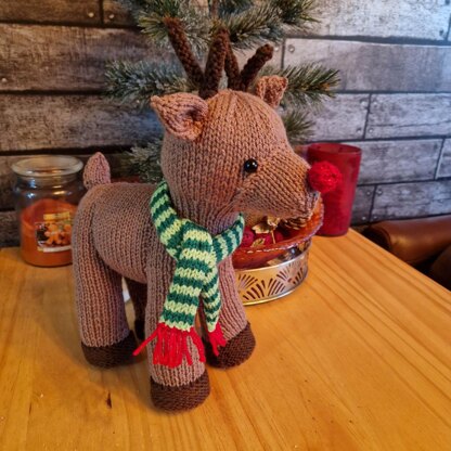 A cute and easy-to-follow pattern for a Reindeer Companion I have named Cuddles, that can adorn your shelves or be a great festive gift. I use double knit acrylic wool. Size 10 (3.5mm) needles and this toy measures 12.5 Inches tall