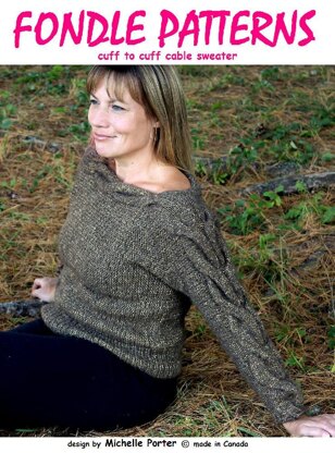 Worked sideways from sleeve cuff to sleeve cuff, with a slit forming the boat neck, this couldn't be simpler. But how striking! This BIG bold cable from wrist to wrist really highlights your shoulders, collarbones, neck and face!