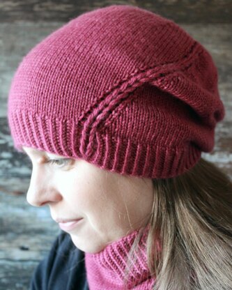 Meaning bound in Scottish Gaelic, Cuibhrichte is a simple and fun to knit hat with three drop stitch braids twisting round the hat and coming together on the crown. With six sizes and beanie, slouch and knit to your own length for each size, this is a pattern the whole family can enjoy! Wear with the matching mitts and cowl to complete the set! The hat is shown in the Adult Slouchy size.