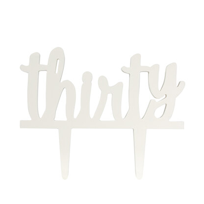 Say goodbye to your twenties in style with Culpitt’s Gumpaste Thirty Pic 145mm. This stylish non-edible “thirty” cake topper is a great way to transform a simple chocolate cake into a celebration cake. Colour the white cake topper using sprays or dusts to suit your theme, and voilà! Reusable.