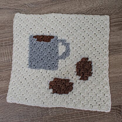 The Cup 'o Joe Coffee Blanket Square is worked c2c (corner to corner) and can be made into a pillow or make a few and create a blanket.