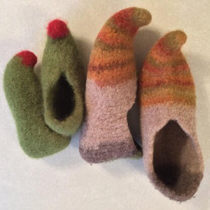 After just one felting wash each size should fit the intended wearer's feet with a generous space allowance inside. You can repeat the wash cycle if needed to shrink and thicken a little bit more for a snugger fit.