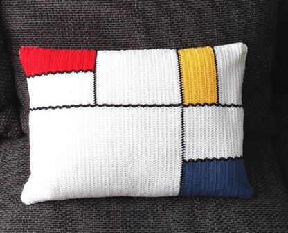 This awesome “Mondrian”cushion can be a great handmade gift for The Christmas, a housewarming party or a wedding. Because of its bright colors and modern design, this pillow is perfect way to decorate any room. The front panel is crocheted with soft cotton yarn,the back panel is a white cotton fabric. You can also to crochet back panel instead of it. Finished size: 50cm x 35cm / 18 ½ inch x 14 inch Skill Level: Intermediate