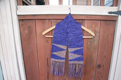 Custody is a basic garter stitch scarf. Short row garter stitch triangles are used to embellish the scarf on either side and highlight a complementary yarn. Included in the design are ribbing effects around the neck area. If you are a beginner and want to try knitting something a little more challenging this pattern is for you. You will learn easy short rows, which are based on the double stitch method. Pictures explain how to make this double stitch and how to knit it when encountered on the next row. Two edge stitches are knitted along both edges to provide a clean edge.