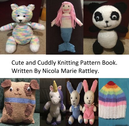 This is a knitting pattern book filled with lots of my cute and cuddly toy patterns, a teddy bear, a bunny, outfits for the bunnies, a panda, a pom pom baby blanket, a mermaid doll, a puppy pillow, a rainbow baby beanie, and a unicorn, perfect little things for those special little ones, friends for life they can be, this book contains 10 different patterns, all in a cute and cuddly range, also a bonus, if you buy them in this book you save $7 then if you were to buy them all each, its a great deal for some wonderful toys.