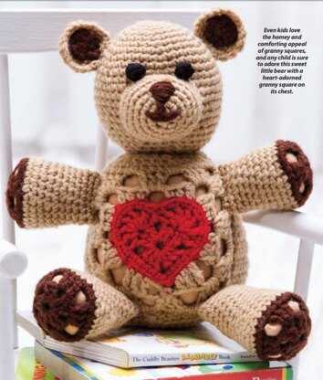 Red Heart With Love medium (worsted) weight acrylic yarn (7 oz/370 yds/198g per skein): 1 skein #1308 tan, 2 oz #1321 chocolate, 1 oz #1909 holly berry, 5 yds #1012 black Size H/8/5mm crochet hook or size needed to obtain gauge Size F/5/3.75mm crochet hook Tapestry needle Sewing needle Fiberfill Tan felt Tan sewing thread Straight pins