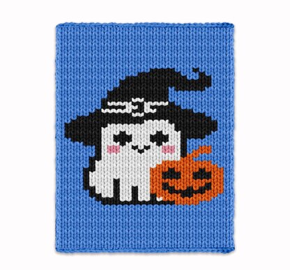 Cute Halloween Ghost with pumpkin - Chunky Blanket, Hand Finger Knitting Pattern - PDF Knit intarsia chart afghan