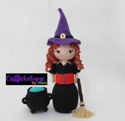 This is a crochet PDF-file PATTERN TUTORIAL, not the actual finished item. This pattern in English (USA) and Spanish Language with its according terminology. About the Pattern: This crochet pattern contains step by step instructions to complete this cute Witch, cauldron and broomstick. It has detailed instructions and high quality photos to help you make this beautiful amigurumi. The pattern includes instruction for the whole witch including all accessories shown in the image. Its size is approximately 32 cm with the hat on, however take into account that this may vary depending on the type of yarn used and gauge. This pattern is for an intermediate level, so people that are wanting to make it should have crochet knowledge. Also amigurumi experience is recommended but not required.