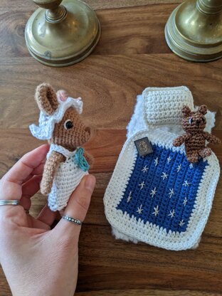 Crochet amigurumi pattern for this cute little mouse and its night wardrobe and accessories : 2 pajamas, 2 nightdresses, 2 nightcaps, a futon, a duvet, a pillow and 2 plushies (30 pages PDF with written instructions and step-by-step pictures).