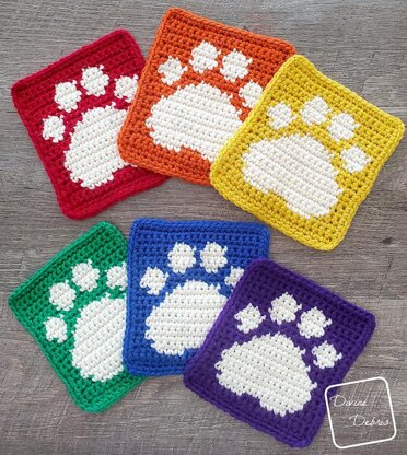 Make a fun and quick ode to your favorite furry friend with the Cute Paw Print Square. This design works up fast, only 21 rows of 19 sts and an easy border, and can be used as a coaster or as a square in a larger pattern as you’d like.