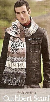 This design was inspired by stone carvings both Celtic and Viking in origin such as those found in Orkney. The rope and Celtic knot are commonly found motifs, the triskele, dating from the Bronze age and earlier represents - amongst other things - the spiral of life which encompasses the essence of the ceaseless interaction between land, sea and sky. The runes - principally Norwegian Futhark - are an ancient form of writing and spell out “The Knitter” on the scarf and, quite simply, “Runes” on the hat. The wonderful “stick” nature of this writing lends itself to use in Fair Isle type knitting designs and gives an opportunity to use a slightly more complicated type of Double Knitting, where the pattern differs on both sides. The scarf is knitted in two parts and joined by grafting so that the writing is the right way up at both ends.