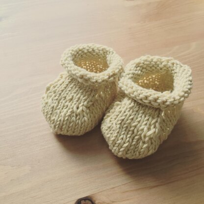 These adorable little booties are knitted in cotton for summer babies, but can easily be knit in heavier yarn for cooler weather.