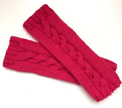 A quick and easy knit for cabled arm warmers (with optional thumb openings). The pattern includes a choice of two lengths, and instructions for each hand are written out in full, with useful check-boxes so you can easily keep track of your progress. This is an ideal first cable project which can be easily modified. Just one ball of Milla Mia Naturally Soft Merino is required (50g / 125m of double knitting yarn). Samples are shown in 'Fuchsia' and 'Forget-Me-Not'. This is a unisex pattern.