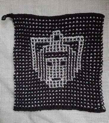 This pattern for a Cyberperson washcloth is essentially fan art (designed and made by me) and un-official, not endorsed by or associated with either the Doctor Who series, or to the BBC. Also, I share it for free, so that other fans can make their own, and I make no money from it.