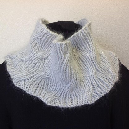 This is pure feminine ultra yumminess. Sweet paillettes for sparkle, angora, kid mohair, alpaca...so soft and lovely to wear. This cowl can be made in double the length and is fully reversible, so it's gorgeous on both sides! You can add repeats of the pattern and make it deeper easily. You hold one strand of each yarn - Schulana "Kid-Paillettes and Hikoo "Kenzie" - held together.