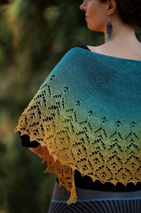 Both the yoke and the 2 lace sections can be repeated indefinitely, allowing the shawl to be worked to any size or yardage.
