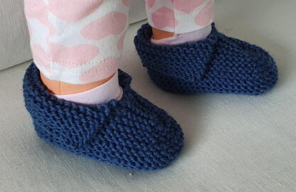 These easy knit bub shoes or slippers are worked in garter stitch and have a folded down top.