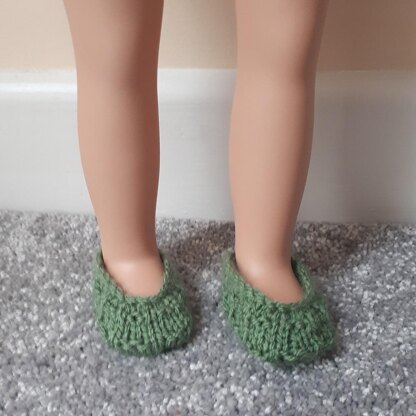 This hand knit PATTERN is for a pair of slip-on shoes for a Doll.