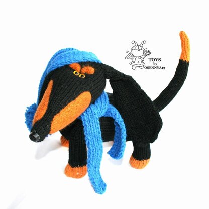 Materials needed • 4 double-pointed needles in a size suitable for the yarn weight you are using. I recommend using needles a size or two smaller than the yarn calls for, to produce a firm fabric. İ used Needles size 4 (3.5mm) • Black yarn for dogs Orange yarn to the legs and tail • Blue yarn for a cap and scarf • Toy stuffing • Plastic eyes and nose • Yarn needle • Stitch holder • Orange felt for a cheeks and eyebrows • Needle felting You can use ready-made felt