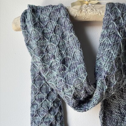 A simple scarf designed for my dad. The scarf features the trellis stitch with tapered ends and a slipped stitch border. Instructions are provided in written form and in charts.