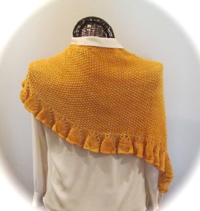 Textured; asymmetrical; ruffled; easy; very pretty; shown in sportsweight; can be happily achieved in laceweight, fingering, or DK. Perhaps even in worsted if a pinned shawlette is preferred. Very gratifying knit!