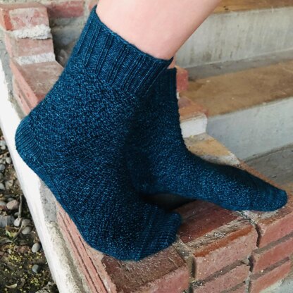 Dahha is a traditional Saudi tribal war dance in a two beat rhythm. The pattern for these cuff down socks with a unique short row heel and toe uses a repetition of two stitches to form a zig zag reminiscent of this musical rhythm. That zig zag is mirrored in the way the toe stitches are closed to the foot. This stitch pattern matches the one used in the hat pattern Nafhat, so you may create a matching set.