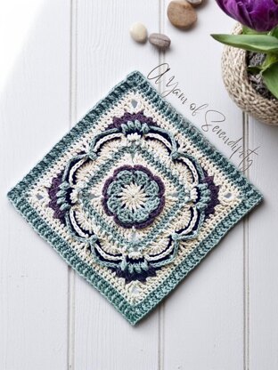 Presenting the Dahlia of Yore Square, my latest design that captures the ornate elegance of the past. My century-old home embodies my love for vintage charm, with every floorboard and detail telling a story. I cherish memories of a friend's sunroom and cozy reading nook, inviting a comforting connection to the past.