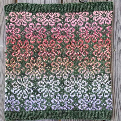 Daisies always make me think of my Grandy, who enjoyed growing, decorating with, and painting pictures of the iconic flower. I also have a very clear memory of hearing Daisy Bell (Bicycle Built for Two) with my Grandmom. This daisy covered cowl is a celebration of these two wonderful women.
