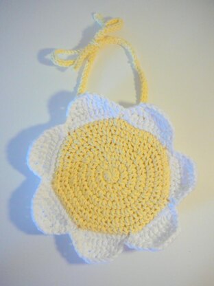Materials Worsted weight cotton yarn in yellow and white 4mm hook