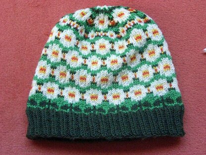 Days are getting longer, the sun is already warm on your skin, the birds are singing... I can't wait for summer when the meadow is full of daisies... Welcome spring with this beautiful daisy cap. It has daisies all over. Even at the top there's a big daisy flower!