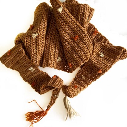 Hello…. Thankyou for purchasing my pattern I called the “Daisy Days” Scarf. The scarf is crocheted in one piece, with the tassels added last. I’ve used a dk/8ply/light worsted weight with a 5 mm hook for the softness. You can choose any weight yarn and hook size you like. My finished scarf measured Approx 43 in ( 109 cm ) x widest part 7 in ( 18cm )
