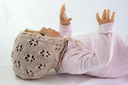 The base has eyelets, with a knit drawstring. Great newborn gift idea for your special baby.