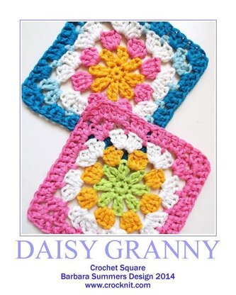 An easy pattern for two (2) Daisy Granny Squares Make it with any mercerized cotton, merino wool or bamboo yarn. You can use this daisy granny for your blankets, cushion covers or bag making. Use bright and bold OR subtle and cute colours - use two (2), three(3) or more colours