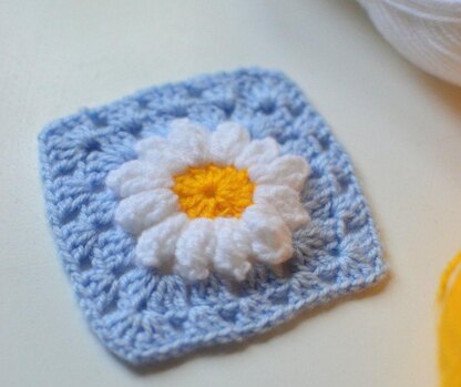 Create stunning projects with this Daisy Granny Square crochet pattern! Made with yellow, blue, and white yarn This square measures 3 1/2" by 3 1/2" It is perfect for blankets, pillows, and more. Customize the colors and embellishments to suit your style. Get creative and enjoy crocheting!