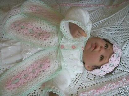 This pretty matinee jacket is made by a combination of crochet and knitting.