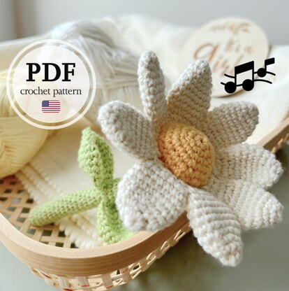 A lovely daisy baby rattle has a comfortable handle shape and is suitable for a baby from about 3 months old.