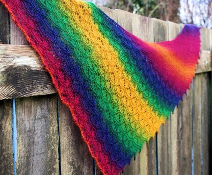 Dakota is worked from tip to the lace edging. Garter stitch is blended with simple lace to create an asymmetrical triangle which wraps around the neck as a scarf.