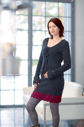 Damenjacke und Minirock mit Häkelbordüren in Schachenmayr Merino Extrafine 85 - S7042