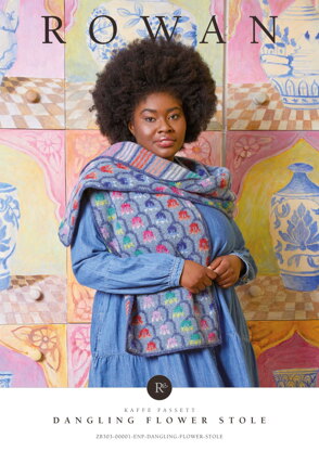 Dangling Flower Stole in Rowan Felted Tweed - ZB303-00001-ENPFRP - Downloadable PDF is a Intermediate Knitting pattern by Kaffe Fassett, available as a Downloadable PDF and includes instructions in English, French. Super fun to make, this pattern could be your next masterpiece!