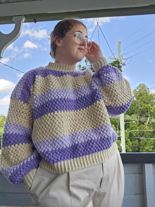 The Darcy Sweater is a drop-shoulder jumper worked up in the bean stitch with a SCBLO ribbing. If you are looking for a garment that works up SUPER quickly then baby, this is IT. The sample was made with my made to measure instructions. I then had the pattern graded in to 10 sizes (XS - 6XL) by the AMAZING and LOVELY and SUPER TALENTED Tegan Shepherdson. Instructions for both methods have been included in the pattern to give you the option because it's 2023 and it's about damn time our clothing is made to fit our bodies and not the other way around. The pattern is designed to have a slightly cropped fit as I personally like my jumpers to sit at the top of my hips however you are free to add or subtract as many rows as you like to get the best fit for you.