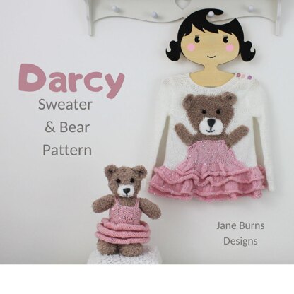 The Sweater is sized to fit approx ages 1-9 years. Whilst the sample is knitted an array of beautiful novelty (washable) yarns from King Cole, all pieces can be knitted in any DK weight yarn, (including the Bear panel, and ruffles).