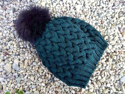 This is a beautiful highly textured hat. All of the cables keep the knitting interesting and help make the hat thick and warm.