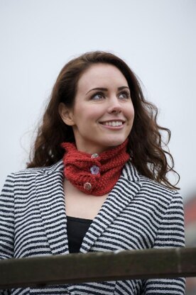 A cowl with a difference! This is a simple, yet elegant, way to make the most of single skeins in your stash - and show off your vintage buttons, too.