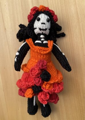 Welcome to my little knitting pattern for my spooky day of the dead knitted doll. Including her sugar skull face and her fabulous dress.