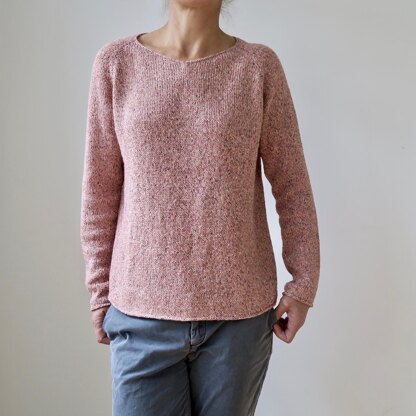 This easy to wear sweatshirt-y pullover is all about the subtle details, including its flattering v-neck, rounded hemline, and streamlined edge treatment. It is intended to be worn with 3-6 inches of positive ease around the bust, and is designed to have ease in the raglan depth as well.