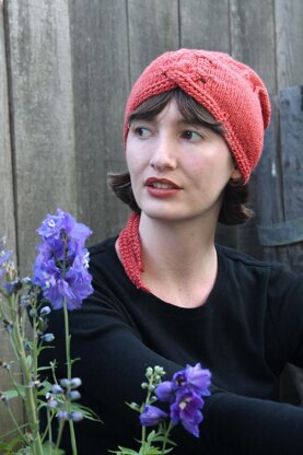 It is a truth universally acknowledged that a female knitter must in all likelihood have a weakness for Jane Austen. When contemplating a literary design, Jane Fairfax of Emma sprang to mind. The name Dear Jane refers both to Jane's introduction through her letters to her aunt and to the way she is clearly perceived by her author. The Dear Jane hat is modeled on fashionable Regency turbans, part of a trend in which the far reaches of the British Empire were treated as both exotic and tame. Ladies' turbans were ubiquitous, fashionable, and seemed rather daring to their wearers. What looked like a turban was really a hat, sewn into shape and prêt-à-porter. Dear Jane is similarly easy to wear. The unusual construction results in a hat you can pull on and style in a variety of different ways just b