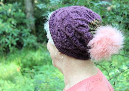 Pretty much all winter, you’ll find my mom, Debbie, wearing a cozy knit hat to ward off the wind and the chill. Often, they’re ones my sister has crocheted, or I have knit.When I first learned to knit, Mom started knitting lessons with me. She had knit long ago, but it was never her main craft. Over the years, knitting has become something we’ve bonded over. Growing up in Southwest Virginia & Northeast Tennessee, we called these hats “toboggans”. This delightfully cabled hat is slightly slouchy with an optional fold-over brim. It works upward with dancing diamond cables, which transform into a cabled swirl at the crown.