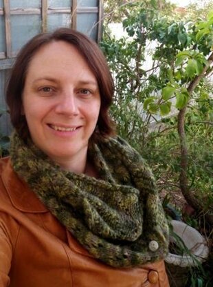 Take three balls of variegated green soft 50% wool, 50% acrylic. Add a gossamer lace knitting stitch originating in the Shetland Islands in the 19th century. What do you have? A sophisticated, stylish scarf that looks like woolen malachite. Add three buttons at one end. Voila! You can now wear it in a variety of ways – looped and long, double looped in a cowl style, or wrapped around your neck like a normal scarf.